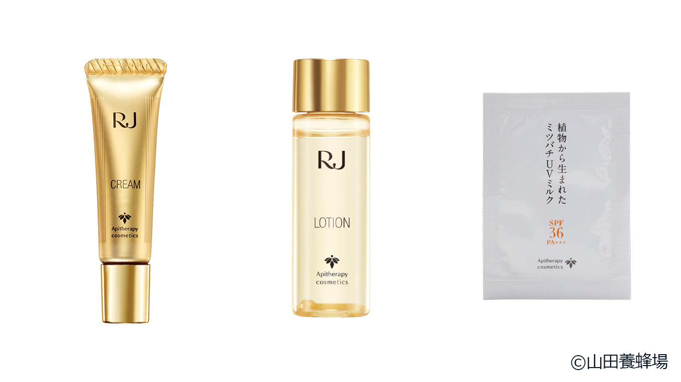 山田養蜂場化粧品ブランド「アピセラピーコスメティクス」のInstagram(yamada.bee_cosmetic)をフォローで、RJローション・RJクリームミニボトル、植物から生まれたミツバチUVミルクサンプルをプレゼント!!